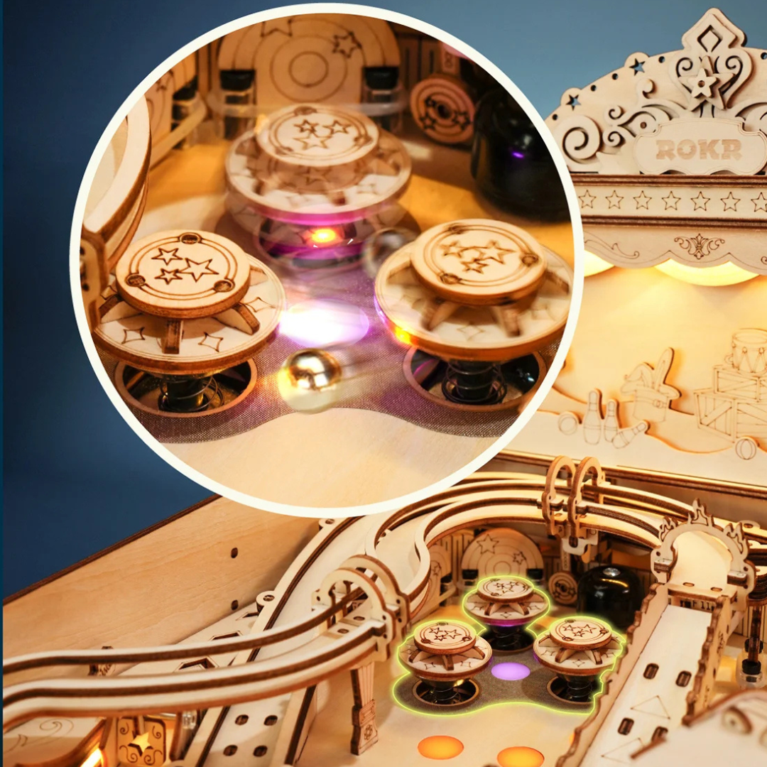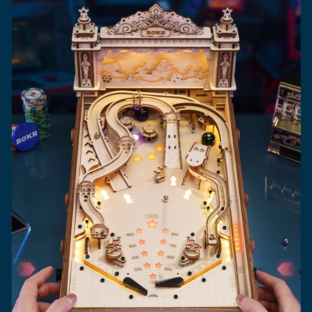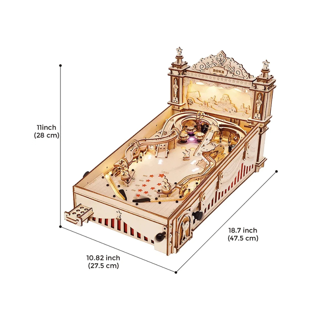 FlipperKunst – Holzflipper Bausatz bietet ein unterhaltsames DIY-Erlebnis, bei dem 482 präzise geschnittene Holzteile zu einem voll funktionsfähigen Mini-Flipper zusammengefügt werden.
