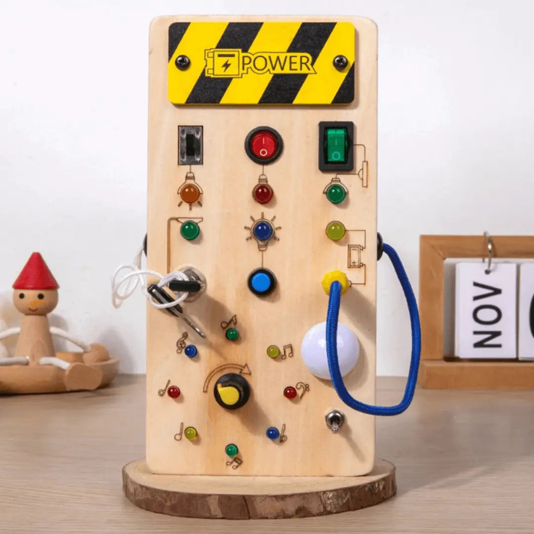 Die MontessoriCraft Lern-Schaltertafel ist ein kompaktes Aktivitätsbrett mit acht bunten Leuchtschaltern. Sie fördert spielerisch die Feinmotorik, Konzentration und das Problemlösungsvermögen von Kindern – ganz ohne Bildschirmzeit.