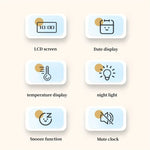 dieser digitale Wecker verfügt über ein gut lesbares LCD-Display, das Uhrzeit, Datum und Temperatur übersichtlich anzeigt. Praktisch und funktional eignet er sich ideal für Nachttisch oder Schreibtisch. Dank geräuschlosem Betrieb und Schlummerfunktion sorgt er für einen angenehmen Start in den Tag.