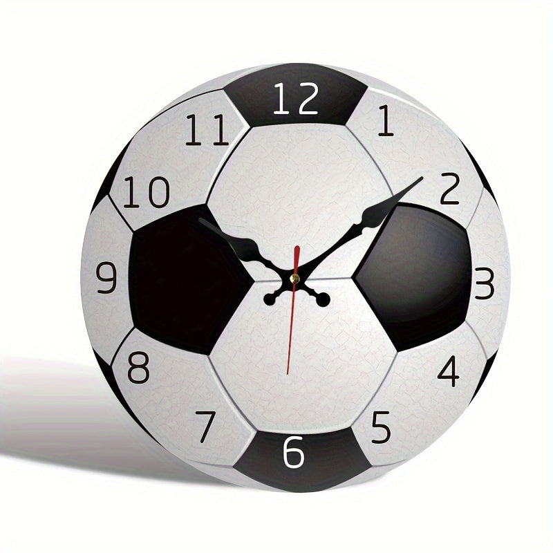 Diese Wanduhr aus Holz mit Fußballmotiv sorgt für eine besondere Atmosphäre. Dank lautlosem Uhrwerk bleibt die Umgebung ruhig, ideal für Schlafzimmer, Wohnzimmer oder Büro. Mit ihrer runden Form und der glatten Holzoberfläche passt sie sowohl in moderne als auch klassische Einrichtungen.