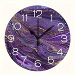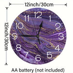 Die VioletGlow Wanduhr vereint präzises Zeitmanagement mit einem stilvollen abstrakten Design. Das lila Zifferblatt mit goldenen Akzenten passt perfekt in Wohnzimmer, Schlafzimmer, Küche oder Büro und bringt Eleganz in jeden Raum.