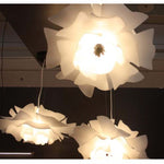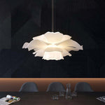 Die Lampe kombiniert ein blumenförmiges Design mit moderner Eleganz und ist aus weiß lackiertem Metall gefertigt. Sie eignet sich ideal für das Wohnzimmer, Schlafzimmer oder andere Räume mit dezentem Stil.