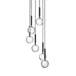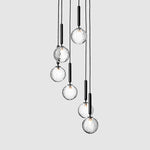 Der Elise Multi Light Kronleuchter ist eine moderne Hängeleuchte, ideal für Treppenhäuser und Räume mit hohen Decken. Schwarzes Metall und Glas vereinen sich zu einem eleganten Design mit funktionalem Charakter.