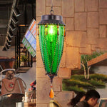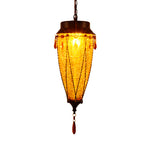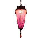 Diese Pendelleuchte im Vintage-Stil verleiht jedem Raum farbenfrohe Eleganz. Der konisch geformte Glasschirm im Art Deco-Stil sorgt für warmes Licht und ergänzt sowohl moderne als auch klassische Einrichtungen.