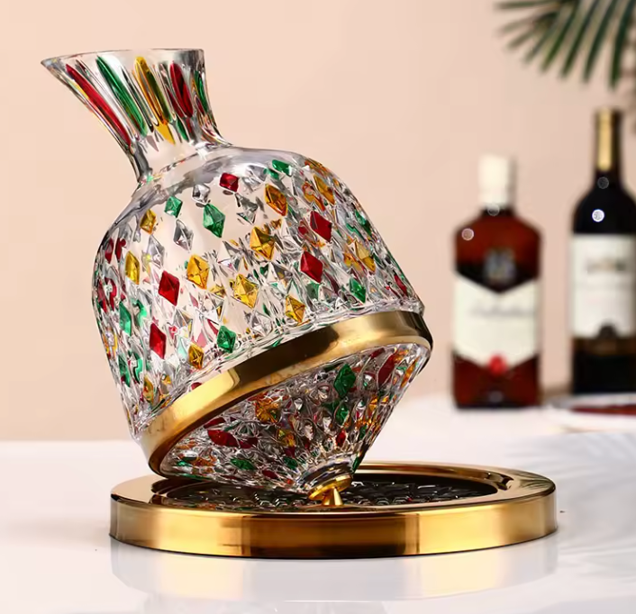 Der KristallSpin Weindekanter wird aus bleifreiem Kristall mundgeblasen und vereint portugiesische Glaskunst mit einem durchdachten Design. Die 360° drehbare Basis sorgt für eine gleichmäßige Belüftung und hebt das Aroma Ihres Weines auf ein neues Niveau.