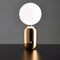 Die Aballs Glas Tischlampe verbindet elegantes Design mit weichem Licht. Die handgeblasene weiße Glasblase ruht auf einem schlanken Metallfuß und bringt modernen nordischen Stil in Wohnzimmer oder Schlafzimmer.