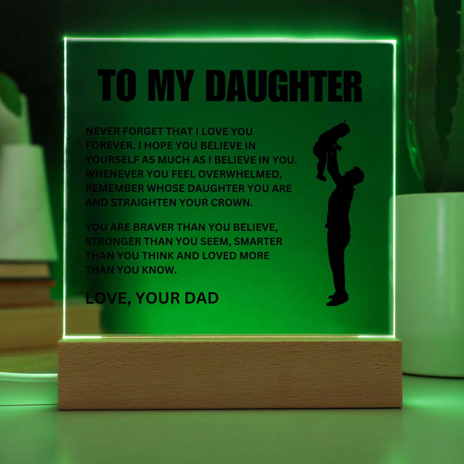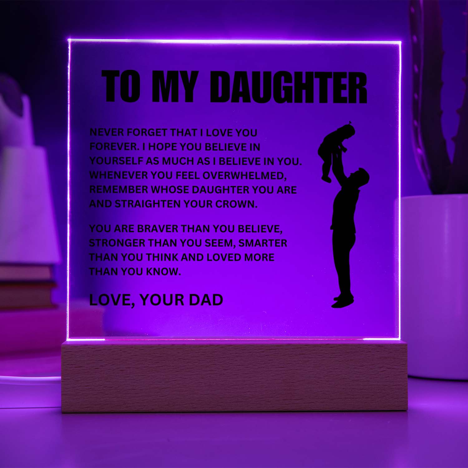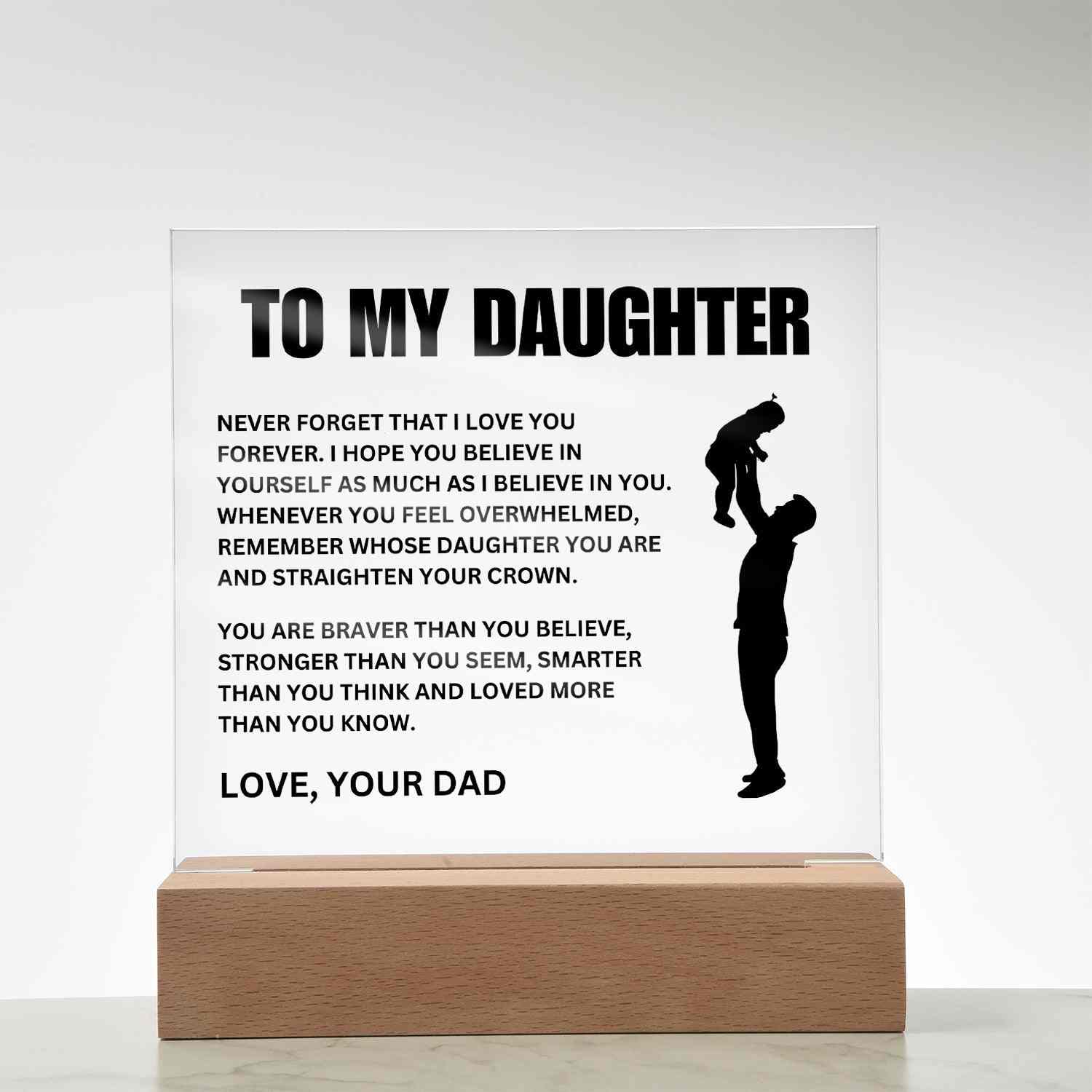 Das CrownGlow LED Geschenklicht ist ein bleibendes Erinnerungsstück. Die fein gravierte Acrylplatte wird von sanftem LED-Licht erhellt und erinnert täglich an Liebe und Unterstützung. Geeignet für Schlafzimmer, Schreibtische oder als stimmungsvolle Nachtlampe.