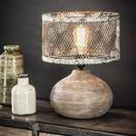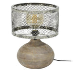 Diese Tischlampe vereint Metall und Holz in einem klaren, modernen Design. Der durchbrochene Metallschirm in Schiefergrau und Weiß sorgt für ein sanftes, angenehmes Licht, während der runde Holzfuß Stabilität und natürliche Wärme verleiht.