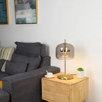 Bringen Sie dezente Eleganz und funktionales Licht in Ihr Zuhause mit dieser vielseitigen Glas-Tischlampe.