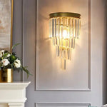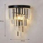 Diese elegante Kristall-Wandleuchte bringt luxuriösen Glanz in Ihr Zuhause. Die geschichteten Kristalle reflektieren das Licht sanft und erzeugen ein warmes, stimmungsvolles Leuchten – ideal für Wohnzimmer, Schlafzimmer oder Eingangsbereiche.