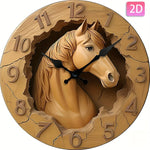 Verleihen Sie jedem Raum ein Gefühl von Ruhe und Eleganz mit der EquineElegance Geräuschlosen Wanduhr. Hergestellt aus hochwertigem Holz und mit einem kunstvoll skulptierten Pferdemotiv, eignet sich diese runde Uhr für Wohnzimmer, Schlafzimmer und Büro. Sie dient als praktisches Zeitmessgerät und setzt gleichzeitig einen stilvollen dekorativen Akzent.