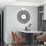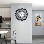 Diese schwarze Metall-Wanduhr mit Glaszifferblatt vereint minimalistisches Design und geräuschlosen Betrieb. Dank ihres lautlosen Uhrwerks ohne störendes Ticken eignet sie sich ideal für Wohnzimmer, Schlafzimmer oder Büro. Ihr klares, modernes Erscheinungsbild verleiht jedem Raum eine elegante Note.
