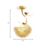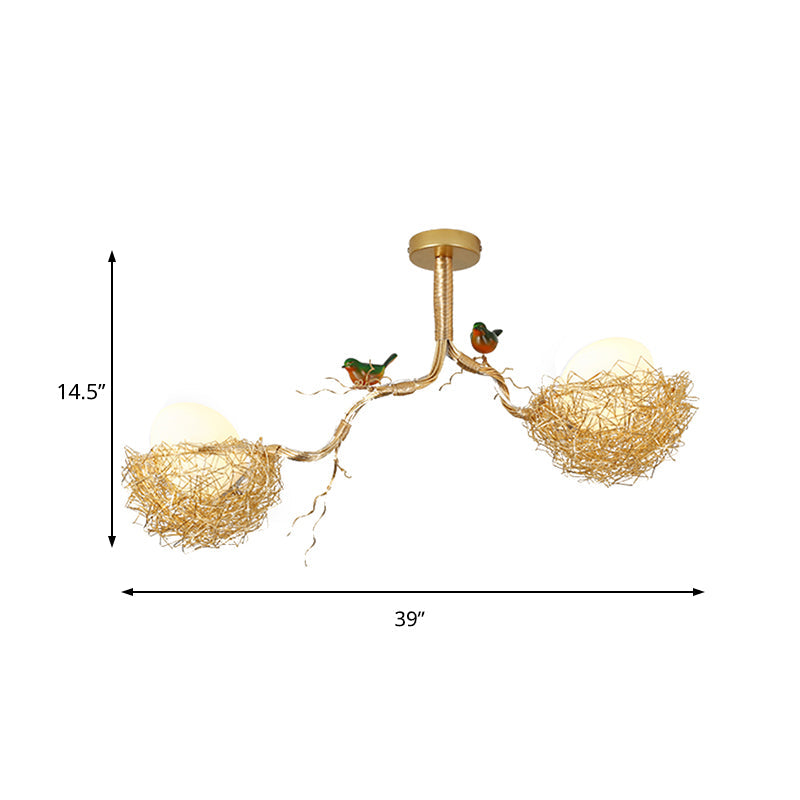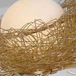Die Marie Pendelleuchte kombiniert eine matte Milchglas-Kugel mit feinen Vogelfiguren in einem goldfarbenen Metallgehäuse. Ideal für Wohnzimmer, Esszimmer oder Schlafzimmer.
