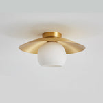 Diese halbanliegende Deckenlampe mit goldenem Finish und Messingschirm verleiht jedem Raum eine elegante Atmosphäre. Perfekt geeignet für Schlafzimmer, Flur und Wohnzimmer mit stilvollem Anspruch.
