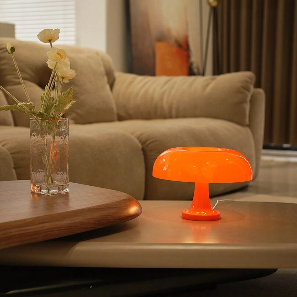 Die Mushroom Magic Tischlampe bringt mit ihrer ikonischen Pilzform und warmem Licht eine gemütliche Atmosphäre in jeden Raum. Inspiriert vom Design der Raumfahrtära, kombiniert sie nostalgische Formen mit modernen Materialien.
