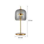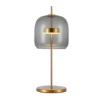 Die MystiGlow Tischlampe sorgt mit ihrem rauchfarbenen Glasschirm und dem erdigen Metallfuß für eine ruhige und gemütliche Atmosphäre. Ideal für Nachttische oder als dekoratives Element im Wohnbereich.