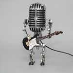 Diese Tischlampe kombiniert verspieltes Design mit industriellem Stil. Der kleine Roboter mit Gitarre sorgt für eine besondere Atmosphäre auf Schreibtischen, Nachttischen oder im Wohnzimmer.