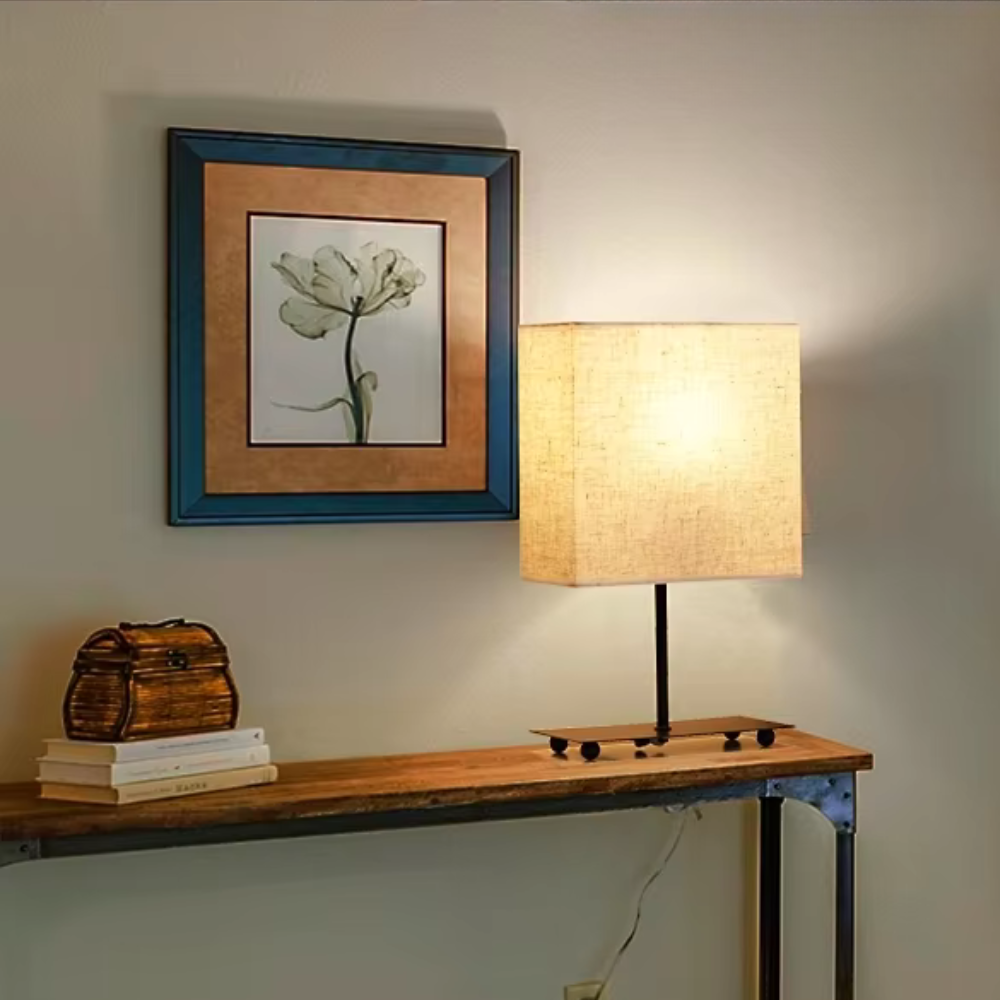 Die Orion Stoff-Tischlampe verbindet klassischen Vintage-Stil mit moderner Funktionalität. Sie sorgt für ein warmes, angenehmes Licht und passt perfekt in Wohn- oder Schlafzimmer sowie gemütliche Leseecken.