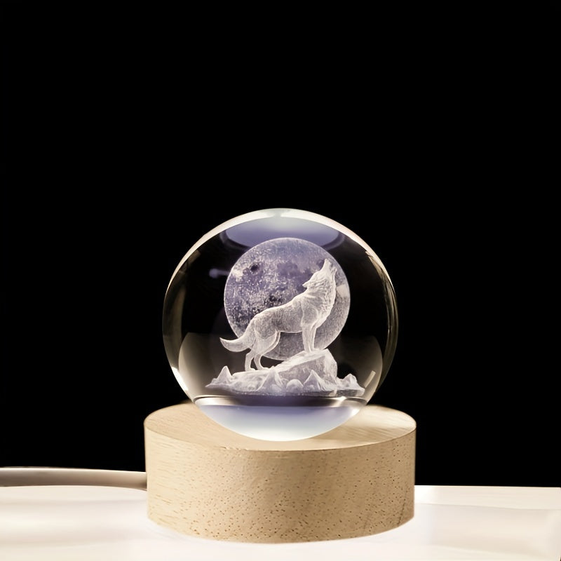 in Ihr Zuhause mit diesem 3D Wolf Glas Nachtlicht. Als Schneekugel gestaltet, mit einem detailreichen Wolfmotiv, verleiht es jedem Raum eine warme und entspannende Atmosphäre.