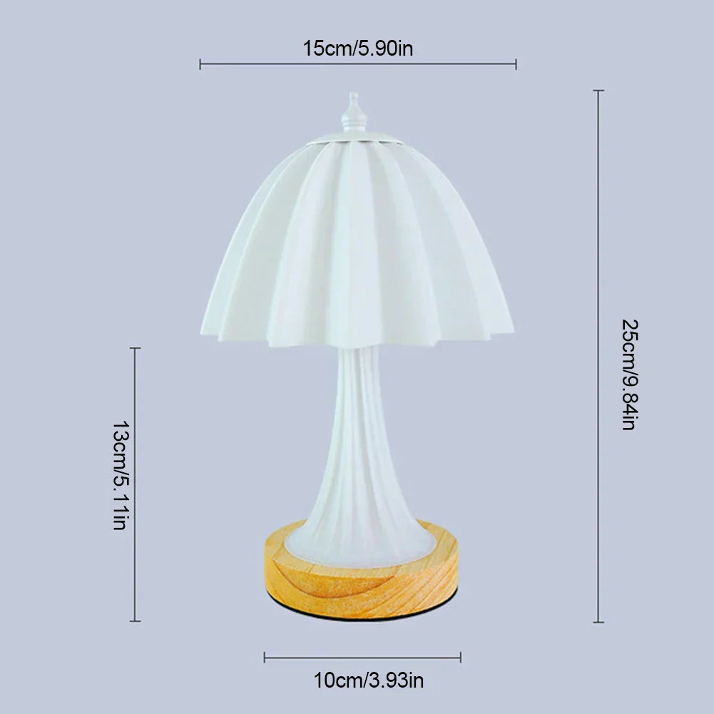 • Material: Natürlicher Holzfuß mit weißem Lampenschirm