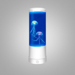 mit der AquaGlow LED Quallenlampe. Diese Lampe sorgt für sanftes Stimmungslicht und bringt einen entspannenden visuellen Effekt in Wohnzimmer, Schlafzimmer oder Büro. Die realistischen Bewegungen der Quallen und das weiche LED-Licht schaffen eine ruhige Atmosphäre.